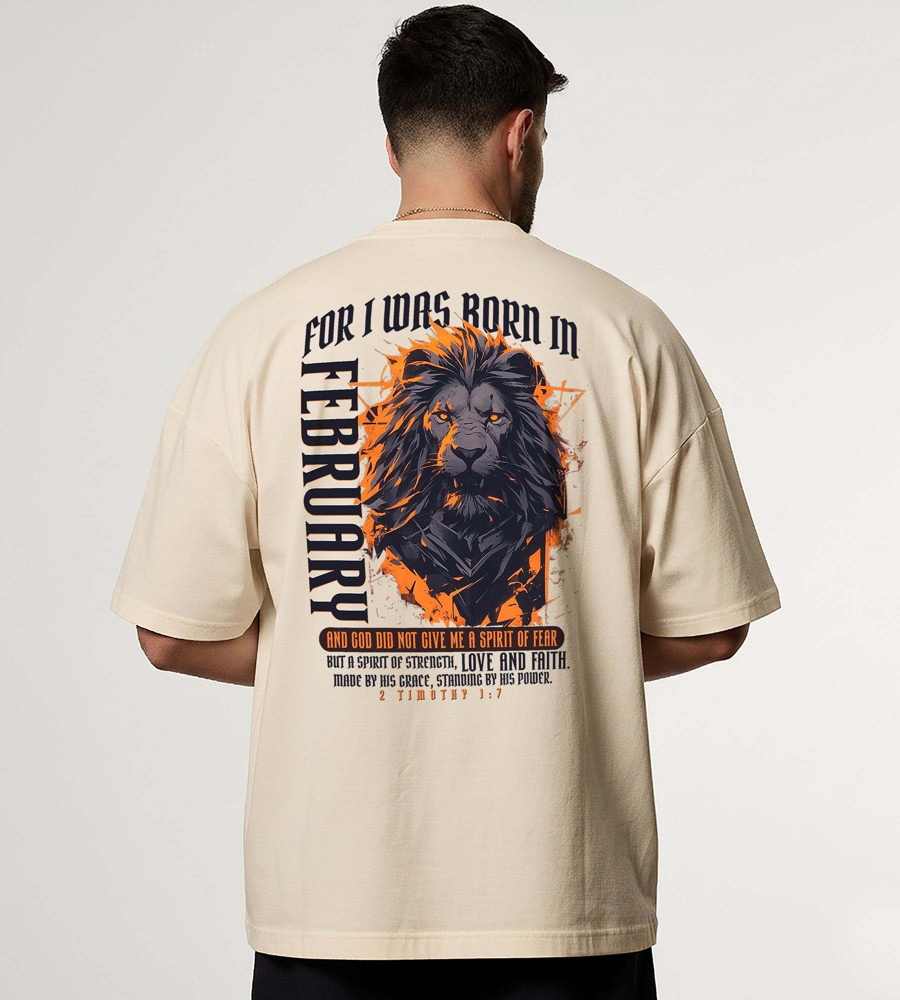 Born in February Oversized Christian Lion Shirt – Faith Strength Love & Power Tee | 2 Timothy 1:7 Bible Verse