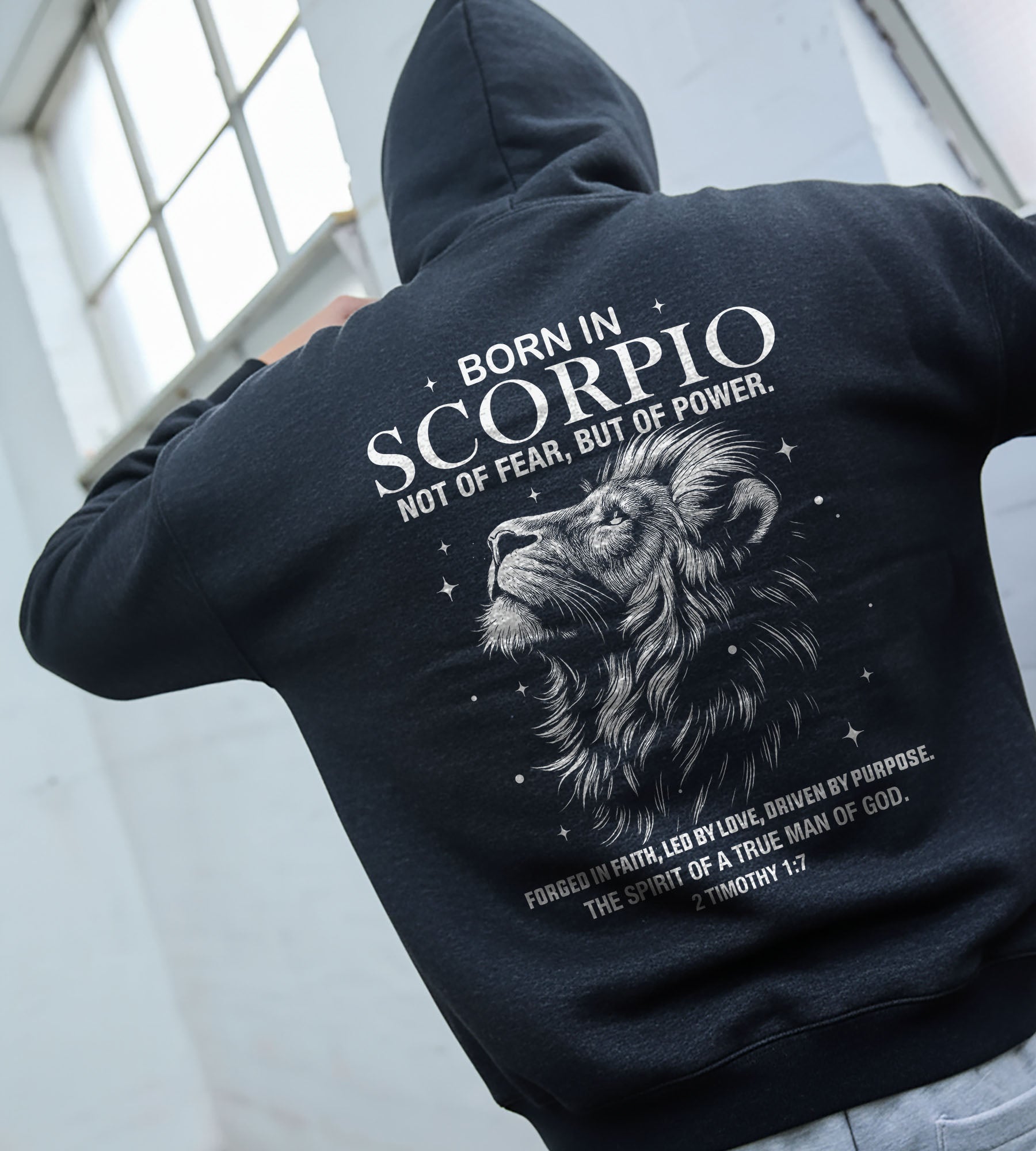 Born in Scorpio Shirt or Zip Hoodie – Not of Fear, But of Power | Christian Zodiac Apparel for Men